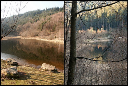 On the way, in the enclosure close to the carpark there are often some red deer to be seen. The lake is in a beautifullly carved out hollow valley in the hills.
