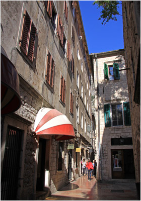 The north-western corner tower, Bastion Citadela, dates from the 13th - 14th C. The moat, which also protects the north side of the old town, is fed by the river Škurda with water from the Montenegrin mountains.