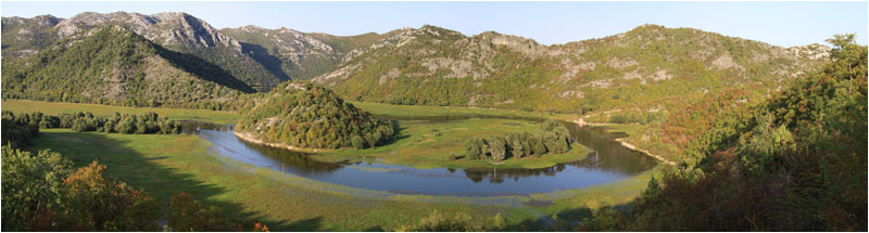 16 km from Podgorica we turn down a smaller road in the direction of Rijeka and after 7 km we reach this beautiful view point, where the river Crnojević makes an almost 180° turn just before it joins Lake Skadar. The river is named after an aristocratic family that ruled the area in the 15th century.
