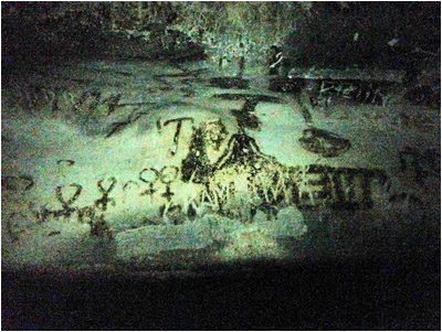 Wir sind selbstverständlich sehr vorsichtig, fassen nichts an und benutzen keinen Blitz. Beim Licht der Taschenlampe liefert nur ein Smartphone erkennbare Bilder.