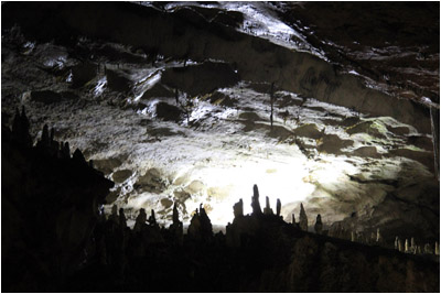 Slowly the stalagmites and stalactites of a typical limestone cave begin to appear.