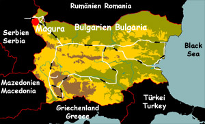 Etwa 20 km nordwestlich von Belogradtschik befindet sich die Magurahöhle. Trotz Navi finden wir die Stelle erst nach etwas Herumkurven in der Gegend. Unterwegs nehmen wir zwei junge Franzosen mit, die per Anhalter auch zur Höhle wollen.