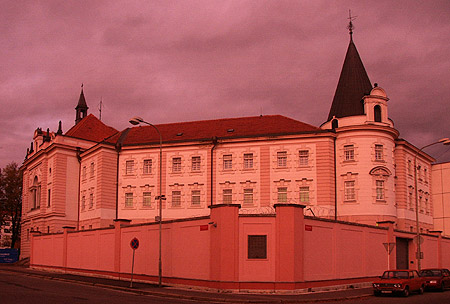 We are fascinated by the trendy colour scheme created on buildings and in the sky by the setting sun. It is only later that we notice we have photographed the Budweis judicial and prison building complex, which used to be nicknamed the Budweis Kremlin because of its numerous towers. Its history reflects the tensions in past German/Czech relations. Up to the end of the nineteenth century German was still the language of the majority in the town. After the 2nd World War the whole German population was expelled. In the Budweis prison German girls were kept before their expulsion and could be borrowed overnight by the occupying Russian officers.