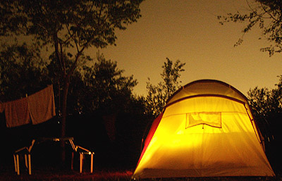 Bei 30 Grad Außen- und einer unmeßbaren Innentemperatur schalten wir den ADAC-Pannenservice ein, der uns auf vorbildlichste Weise eine Werkstatt in der Nähe sucht und dringend notwendige Übersetzungsdienste leistet. Johns Geburtstag verbringen wir deshalb in freudiger Erwartung auf kühle Luft ganz auf dem Campingplatz.