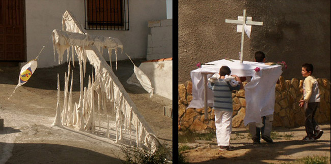 Processions seem to be an important topic in Guadix: preparations (left) - including placement advertising from a well-known chain of German supermarkets and (right) a play version.