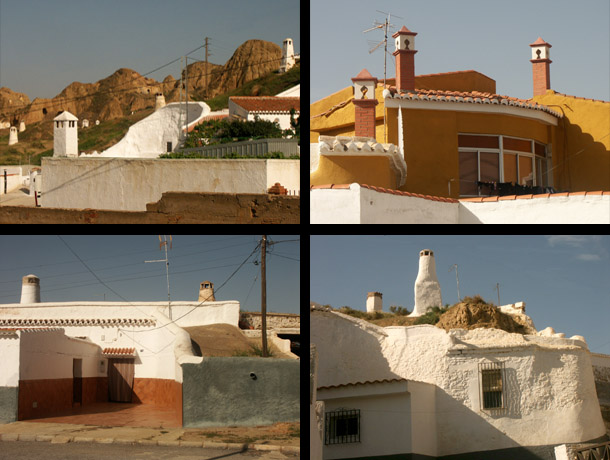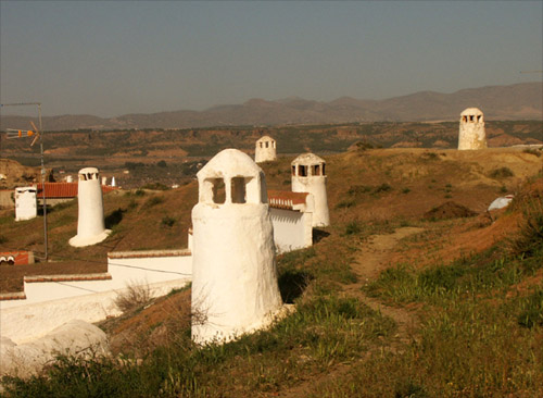 Nach einigem Herumirren finden wir es doch noch, das so genannte Troglodytenviertel der Stadt, das aus ca. 2000 auch heute noch bewohnten Höhlen besteht. Über ein großes Gebiet verstreute, aus dem Boden ragende Schornsteine zeigen an, dass darunter gehaust wird.