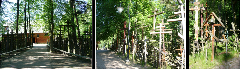 Here at Grabarka the crosses cover the whole hill. They are votive offerings brought by pilgrims to this highly revered place. The crosses have three crossbeams, two at the top and a sloping one lower down for the crucified persons feet.