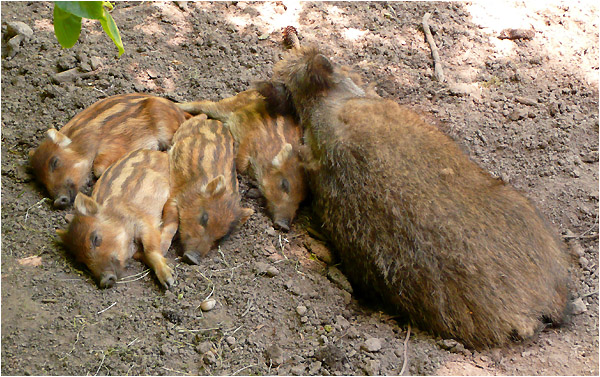 Ein paar Gehege weiter hätten wir uns zu dieser Wildschweinfamilie am liebsten dazugelegt.