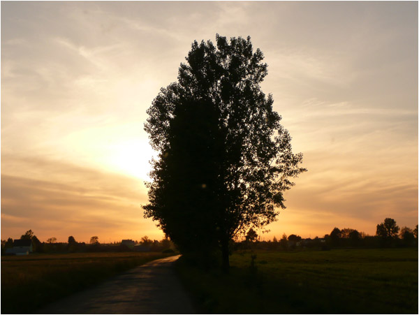 We get off the right road back to the camping site as our navigation system leads us astray. We cant drive much further in this direction, nevertheless we enjoy the evening colours. After turning we come across a German mobile home whose driver is trying with the help of half of the village population to turn in a narrow road. We get into conversation and find that they have got here thanks to same type of navigation system as us.