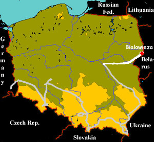Now we have finally reached it, the Bialowieza National Park. What do we find? Woods, woods and more woods. Large trees tower up more than 50m into the air. In the small village of Bialowieza, from where - with limitations - the area can be explored, we find a nice camping site.