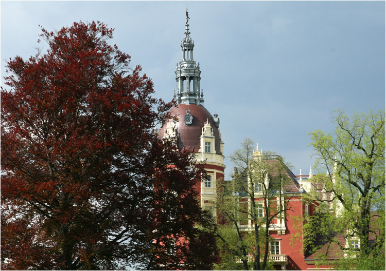 Blutbuche und frisch restaurierte Kuppel des Neuen Schlosses