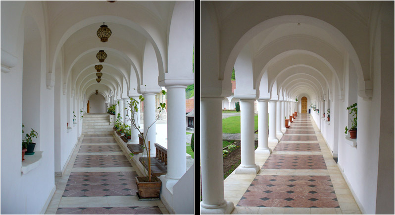 Die Schönheit der Arkadengänge hat es uns angetan. Wir sehen kaum Besucher oder Mönche. Schwer vorzustellen, dass das Kloster zu manchen Zeiten brechend voll sein soll.
