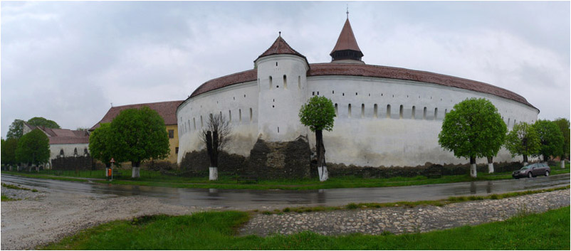 And this is the view of the old castle. Yet another historical treasure. The church was built between 1280 and 1300. Three almost circular walls surround it with a perimeter of 430m, which makes it one of the largest church fortifications in Transylvania. The inner ring is 12m high and at the base 4m thick and surrounded by seven four-storied towers. Of these, only the one on the left has a flat sloping roof. In it is a 15th century chapel decorated by valuable frescoes.