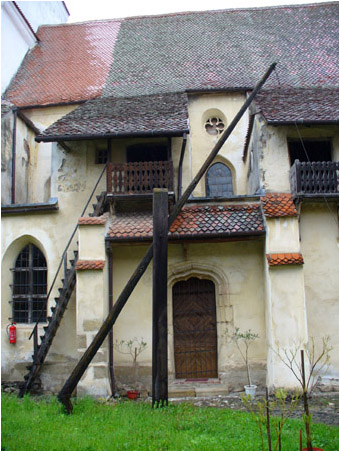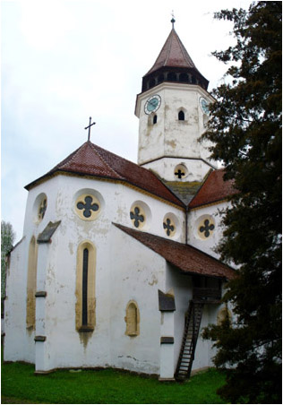 In contrast to the actual church buildings in the rest of Transylvania, those in Tara Barsei (Burzenland) are not themselves fortified, but have surrounding defences. In the photo we see part of the original Greek cross form. The church was not actually completed by the Teutonic Order. By order of King Andrew they were only allowed to build wooden buildings. After a few years they started to ignore this and to expand vigourously, so Andrew drove them out by force of arms in 1225. Their churches were handed over to the Cistercian Monastery at Carta, which finished the churches in the Gothic style.
