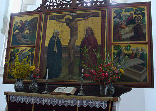 The church was restored in the 1960s, and at that time the Gothic winged altar was brought back here from the Burzenland Museum. It shows scenes of the crucifixion, burial and resurrection of Christ.