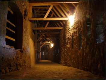There were a total of 276 rooms which were assigned to individual families. Some of the numbered doors are open and we can go in and feel the atmosphere of the rooms, now sparse, but in times of emergency certainly overfilled. There are various connecting openings and passageways joining some of the rooms, in particular there are openings onto the defensive passage (below).