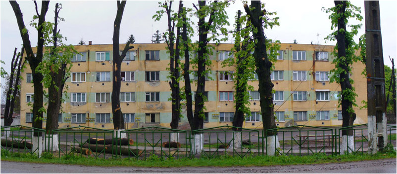 Here as well you just aim for the town centre and easily find the fortified church. Near the old moat is a row of rather severely trimmed old chestnut trees which now allow a direct and less obstructed view of the castle from this block of concrete slab flats, or maybe of the block of flats from the castle, depending on your priorities.