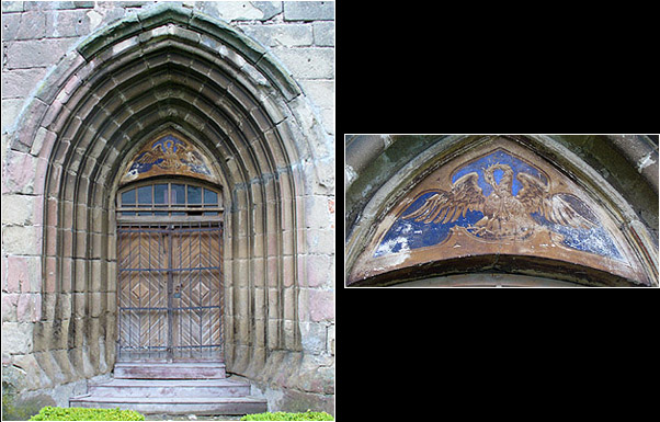 Our guide points out another interesting detail above a side portal. The painting shows a pelican, which according to legend in times of scarcity would feed its young with blood from its own breast. In mediaeval Europe this came to be used as a symbol for the Passion of Christ.
