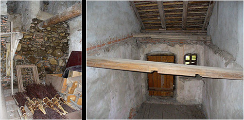 The various rooms are reachable via balconies, and via wooden steps that are so steep that they are more like ladders. The castle has been burnt down often enough in history and is now well equipped with modern fire-extinguishers.